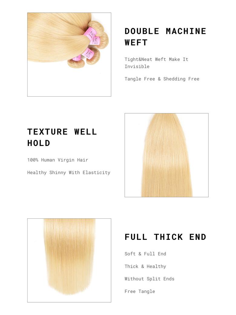 4PCS UNice 613 Blonde Hair Weave Bundles Straight Virgin Human Hair