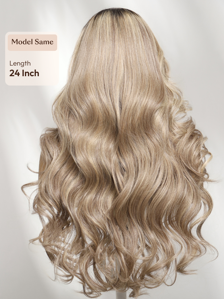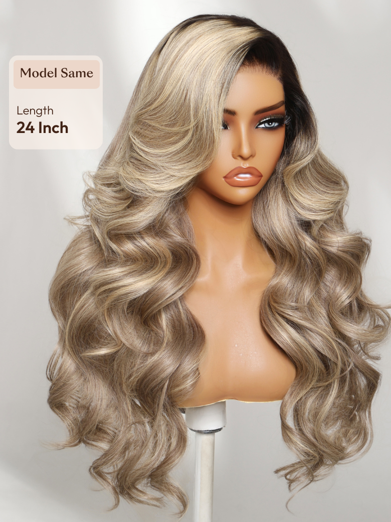 Lumivive 13×4 Bye Bye Slip™ Lace Frontal Ash Blonde with Beige Blonde Highlights Body Wave Wig with Side Part Bangs