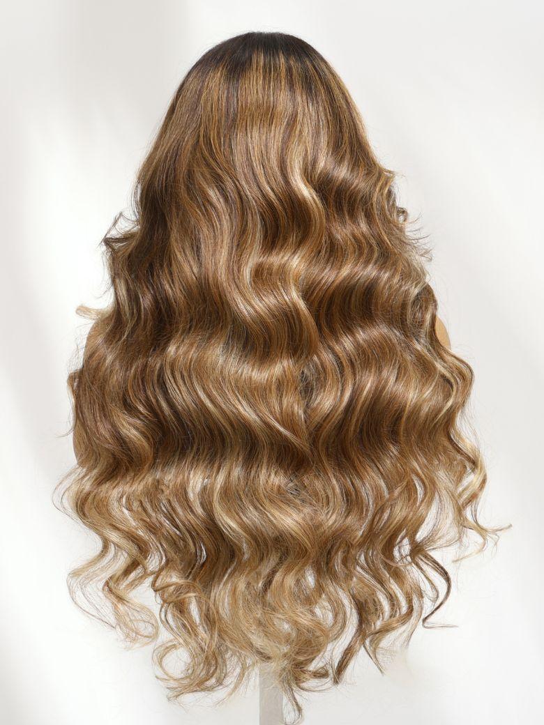Lumivive 13×4 Bye Bye Slip™ Lace Frontal Warm Brown to Honey Blonde Balayage Loose Wave Wig with Face Framing Layers