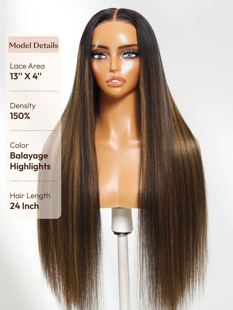 Lumivive 13×4 Pre-Everything™ Lace Frontal Balayage Highlights Yaki Straight Drawstring Wig