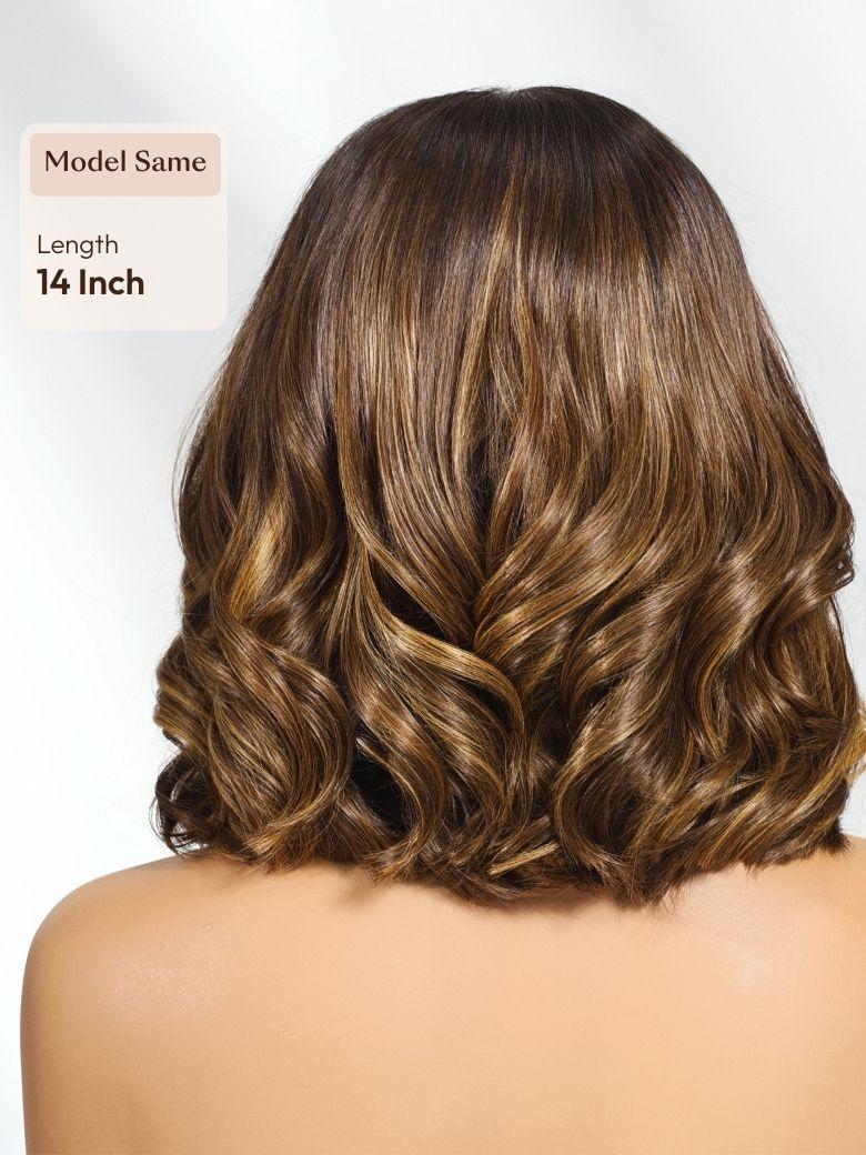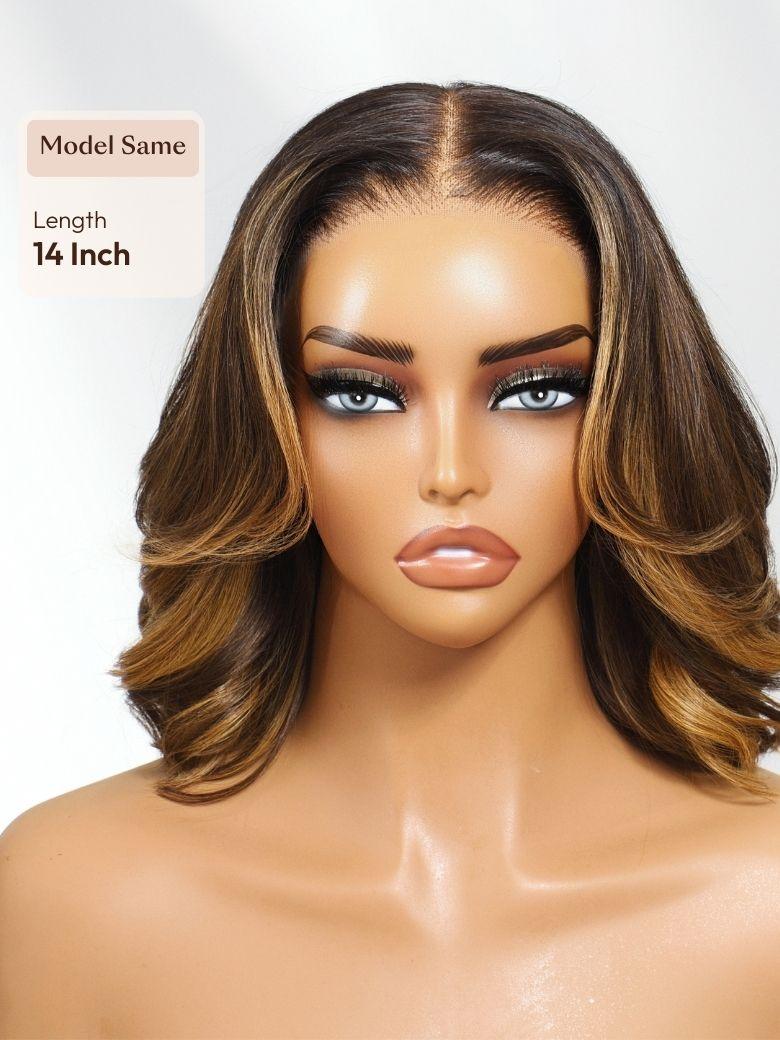 Lumivive 13×4 Pre-Everything™ Lace Frontal Brown With Honey Blonde Face-Framing Highlights Wavy Bob Drawstring Wig