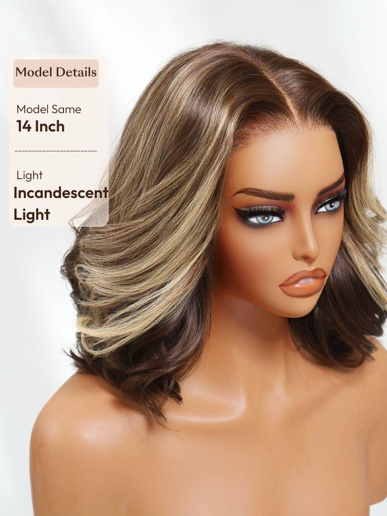 Lumivive 13×4 Pre-Everything™ Lace Frontal Dark Brown with Face Framing Highlights Layered Cut Bob Drawstring Wig