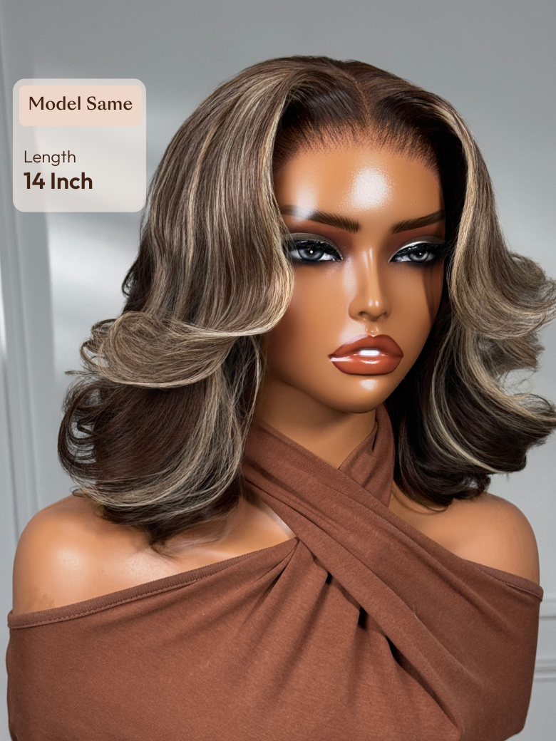 Lumivive 13×4 Pre-Everything™ Lace Frontal Dark Brown with Face Framing Highlights Layered Cut Bob Drawstring Wig