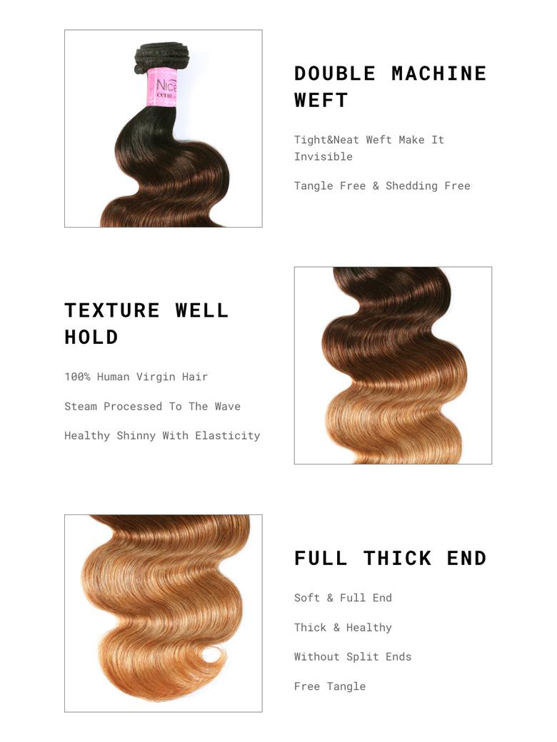 Lumivive 3Pcs Human Hair Brazilian Body Wave Bundles In Brown Ombre Color
