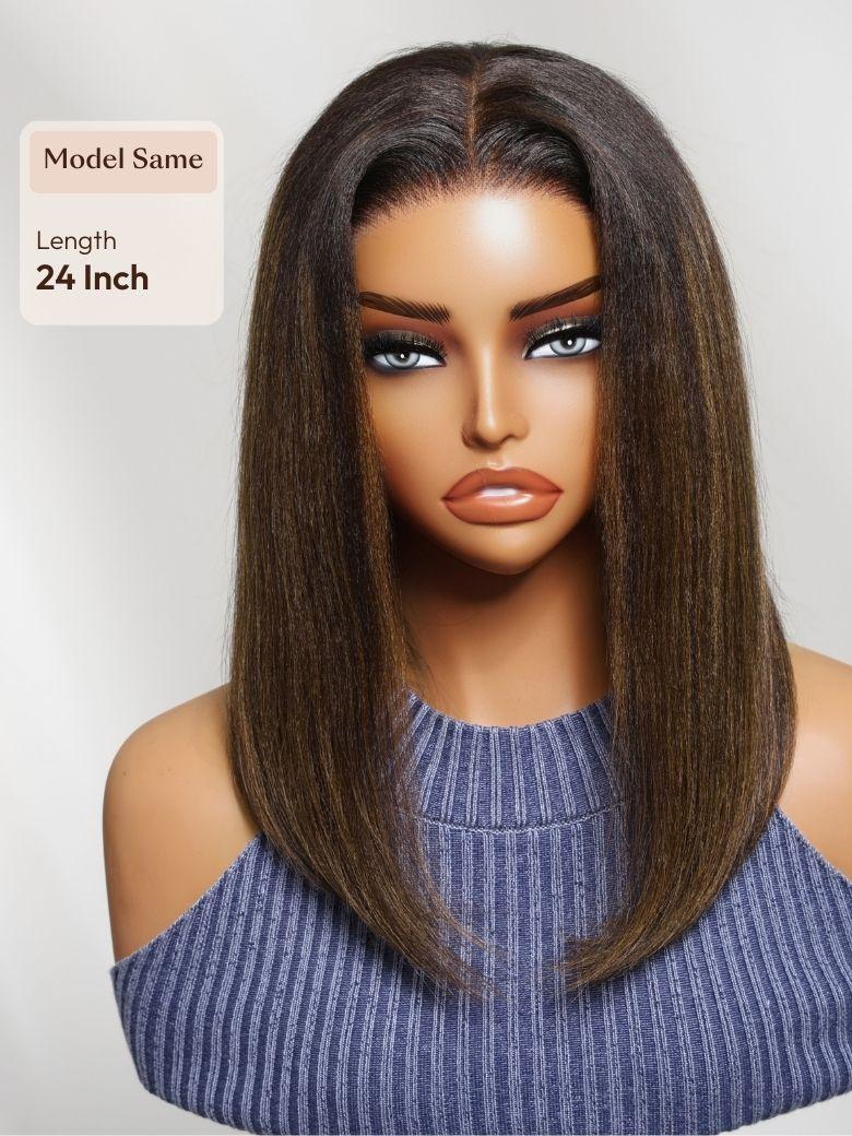 Lumivive 7×5 Bye Bye Slip™ Lace Balayage Highlights Yaki Straight Bob Wig with Invisi Drawstring