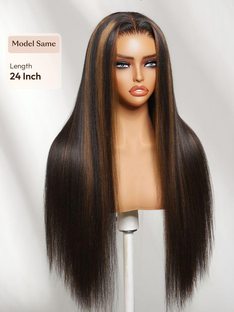 Lumivive 7×5 Bye Bye Slip™ Lace Black with Golden Brown Highlights Yaki Straight Wig with Invisi Drawstring