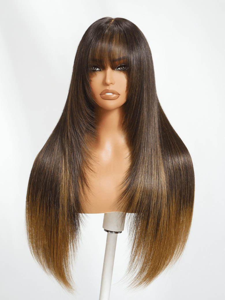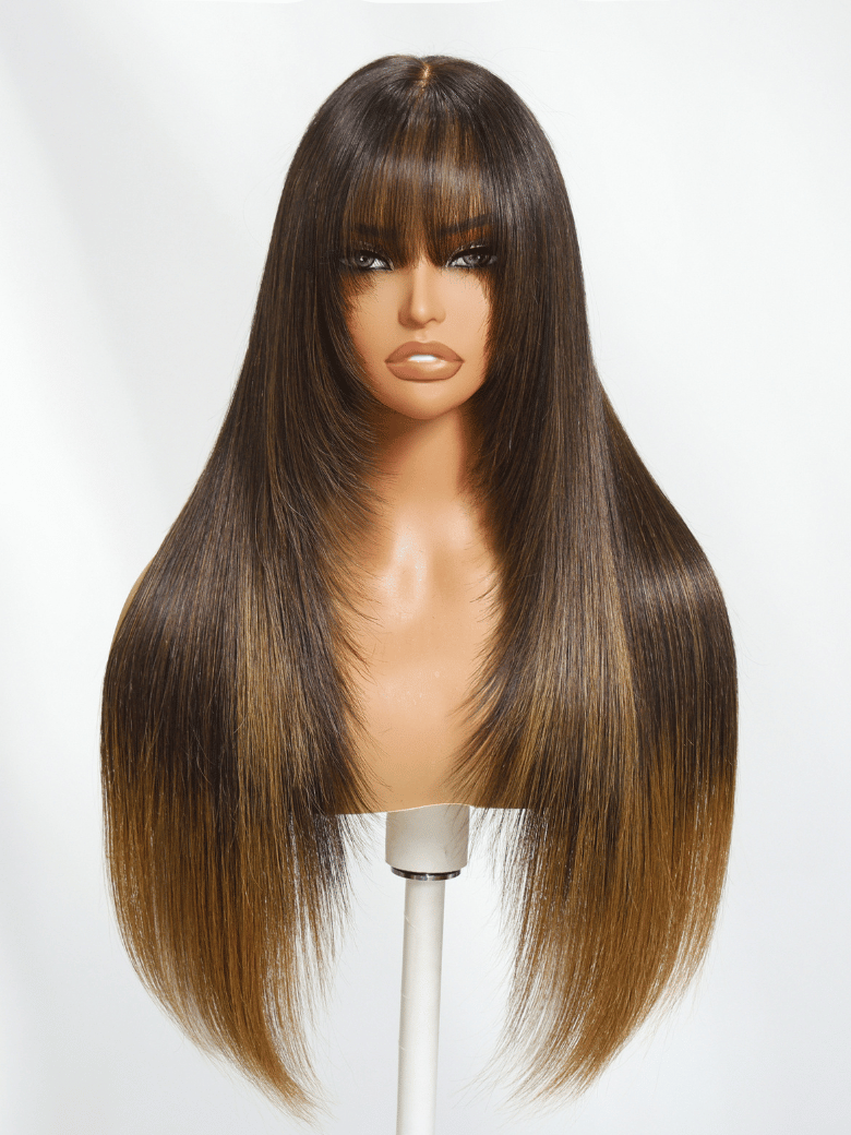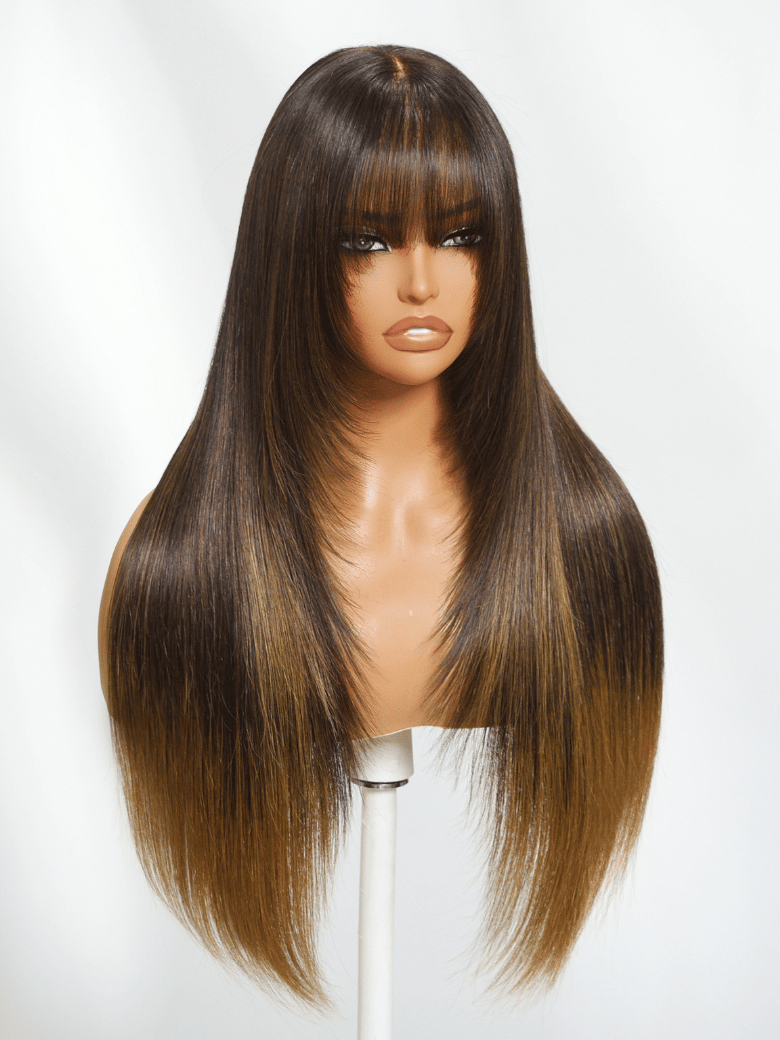 Lumivive Bye-Bye Knots 7×5 Lace Brown to Blonde Ombre Layered Straight Wig With Wispy Bangs