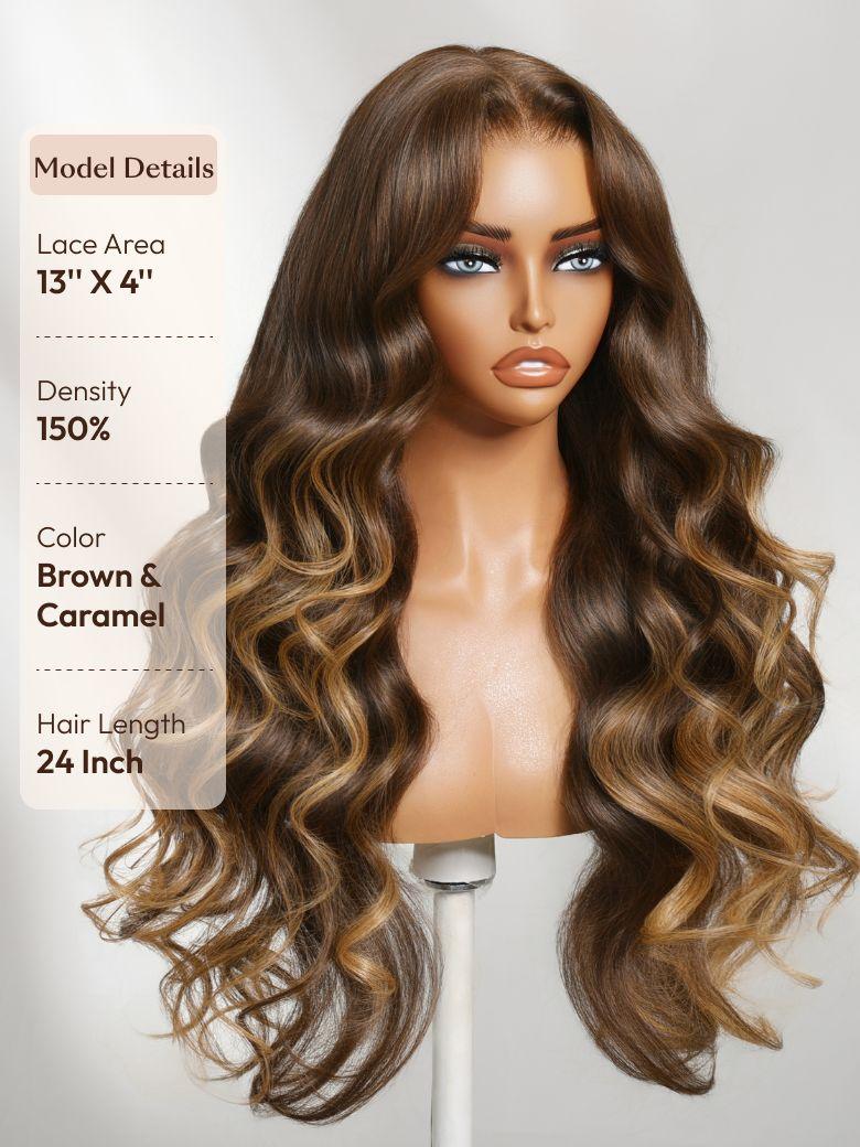 Lumivive Bye-Bye Knots™ 7×5 Lace Deep Brown with Caramel Higlights Loose Wave Drawstring Glueless Wig