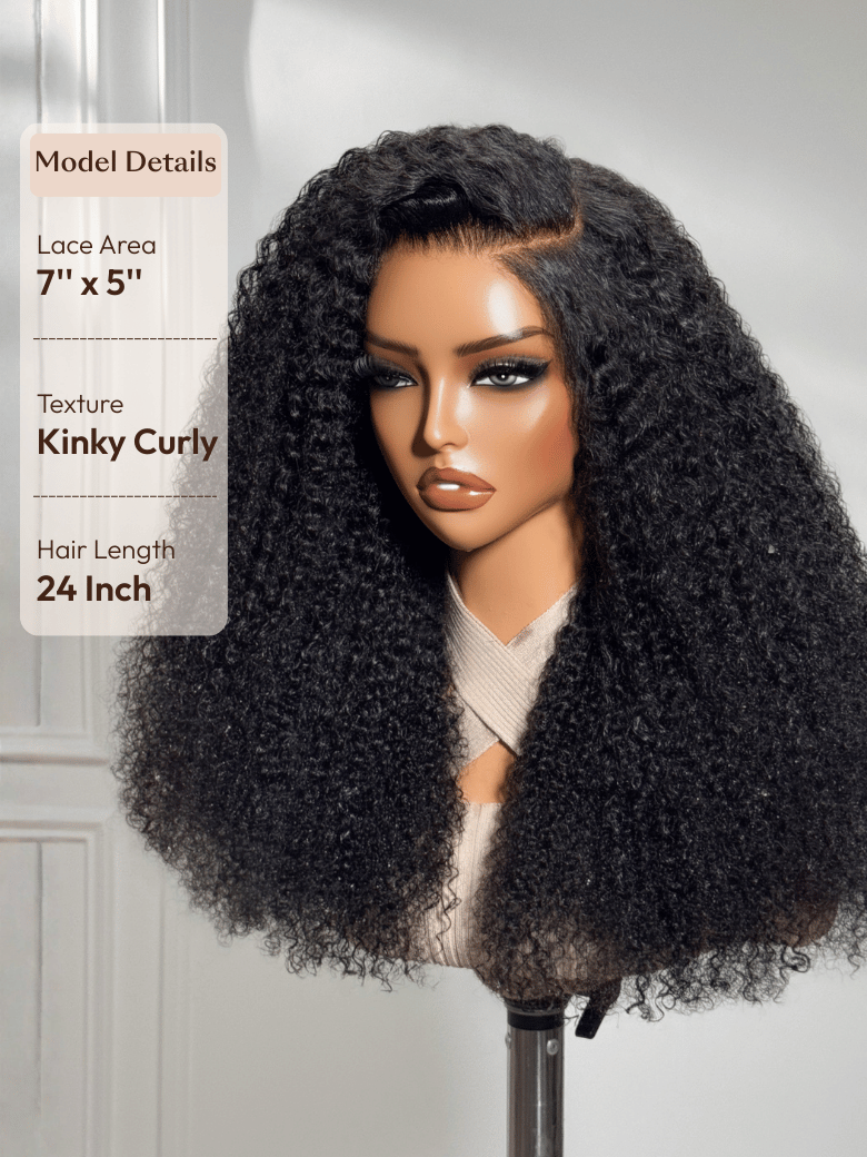 Lumivive Bye Bye Knots Wig 7×5 Glueless Lace Black Kinky Curly Wig With Bleached Knots