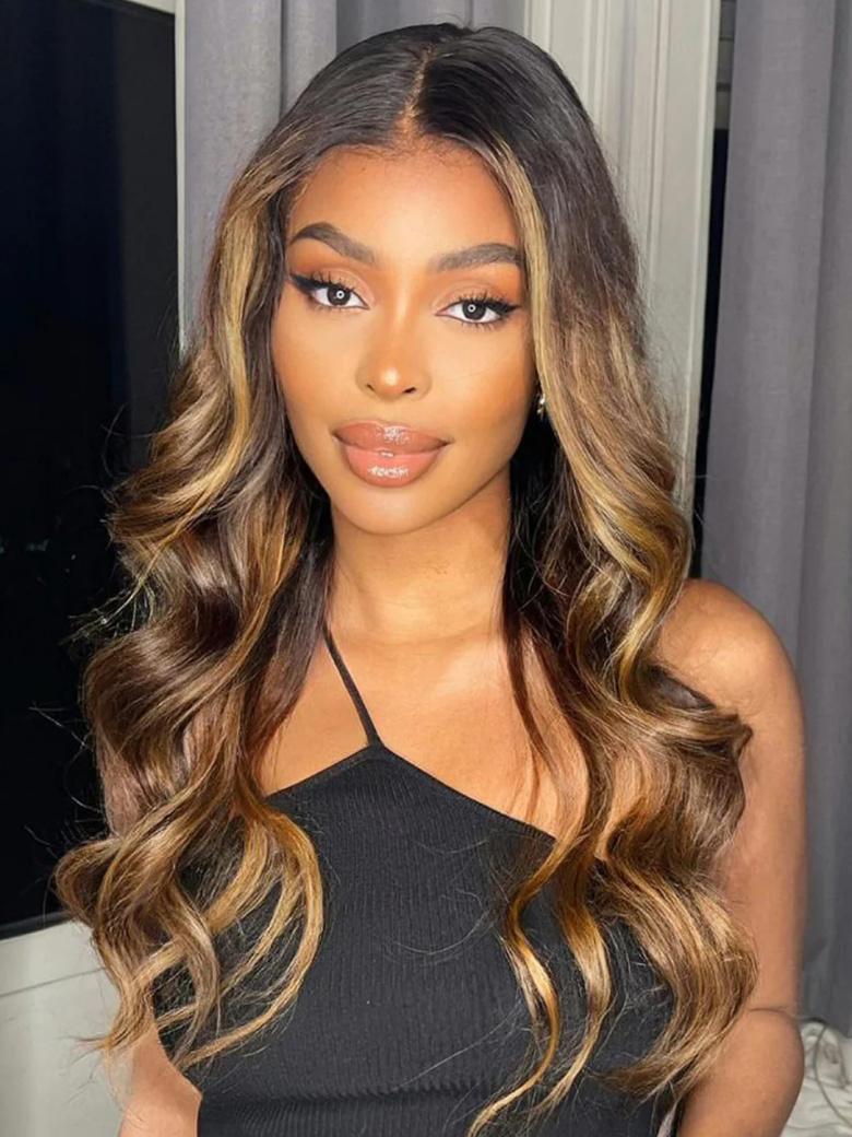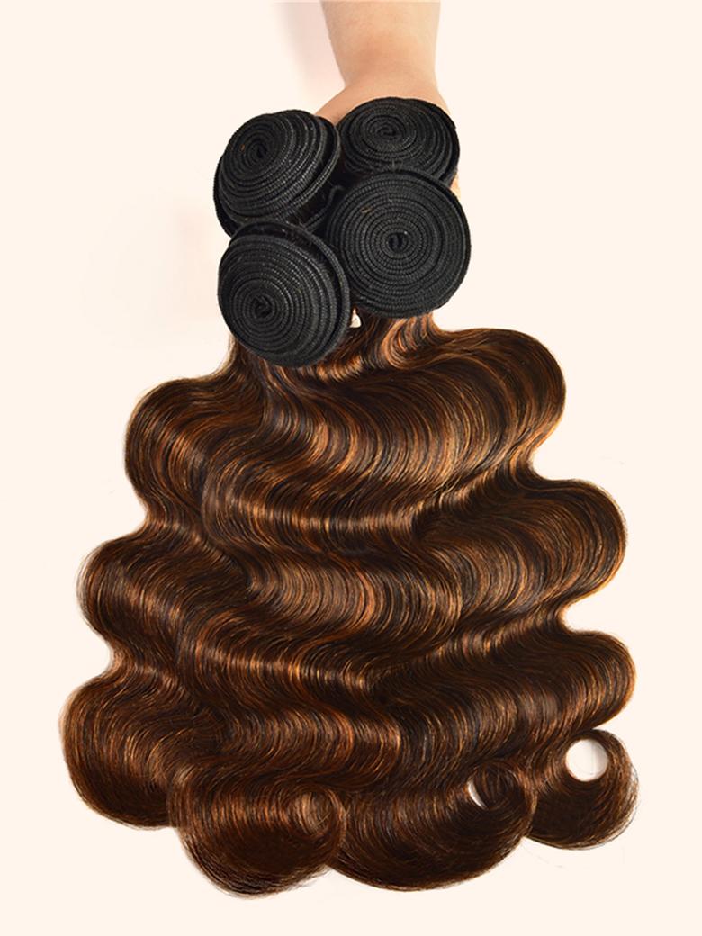 Lumivive Classic Brown Highlight 4Pcs Human Hair Body Wave Bundles