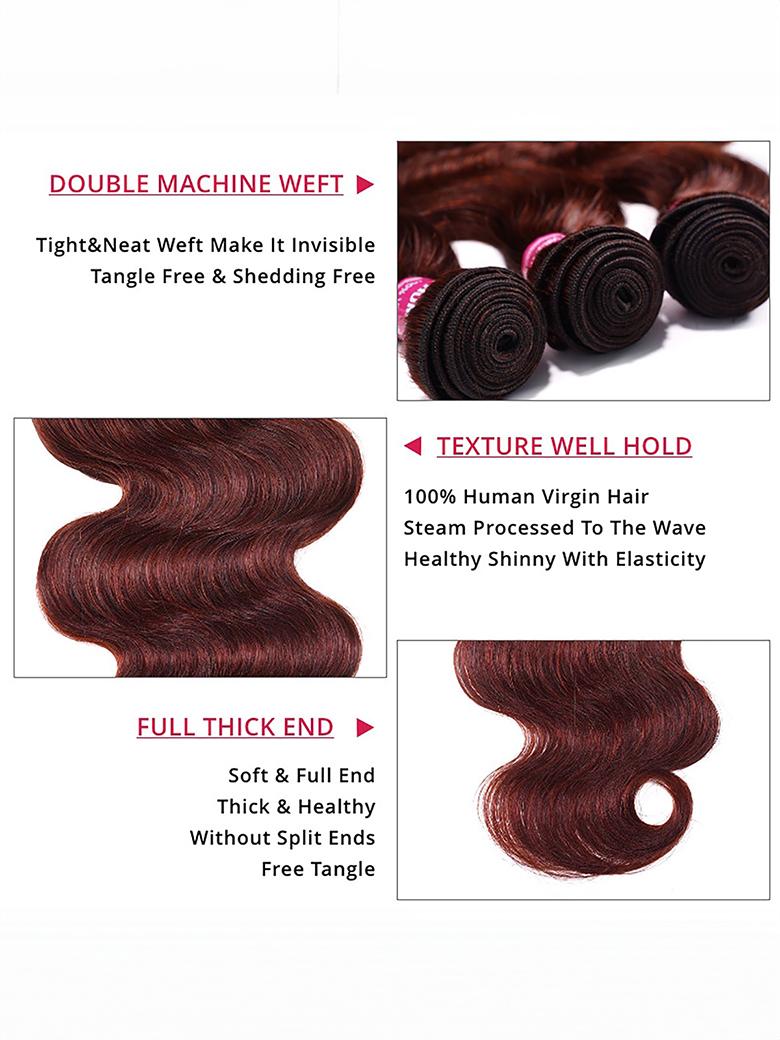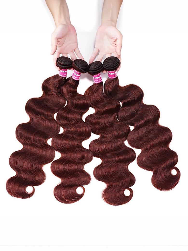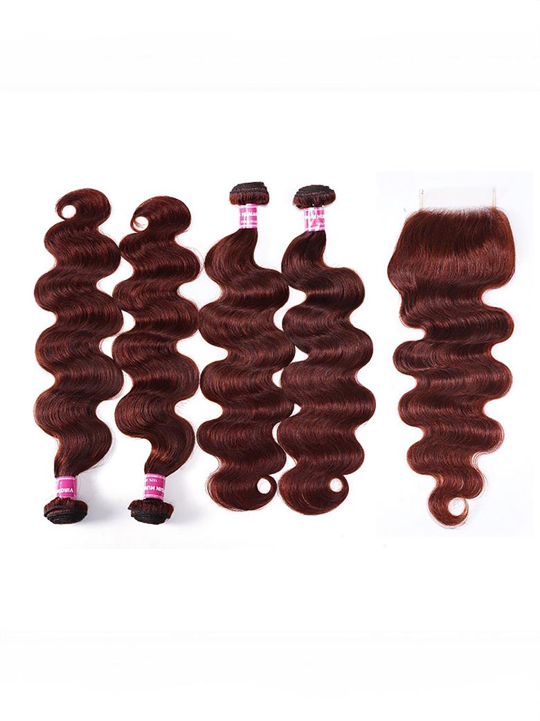 Lumivive Dark Auburn Body Wave Remy Human Hair 4 Bundles With Closure Deal