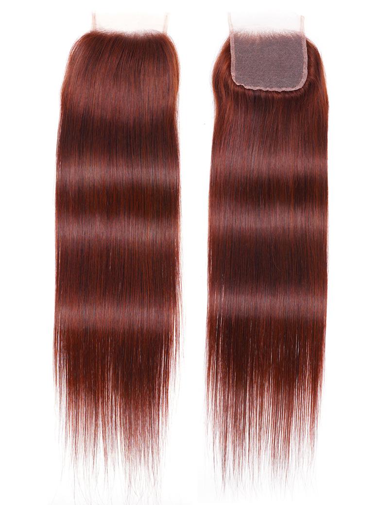 Lumivive Dark Auburn Straight Remy Human Hair 3 Bundles With Closure Deal