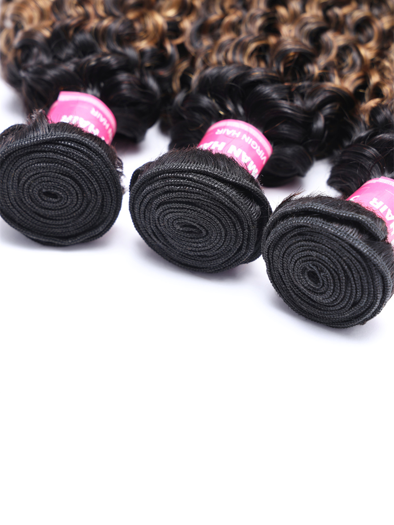 UNice #FB30 Brown Balayage Highlight 3Pcs Jerry Curly Human Hair Bundles