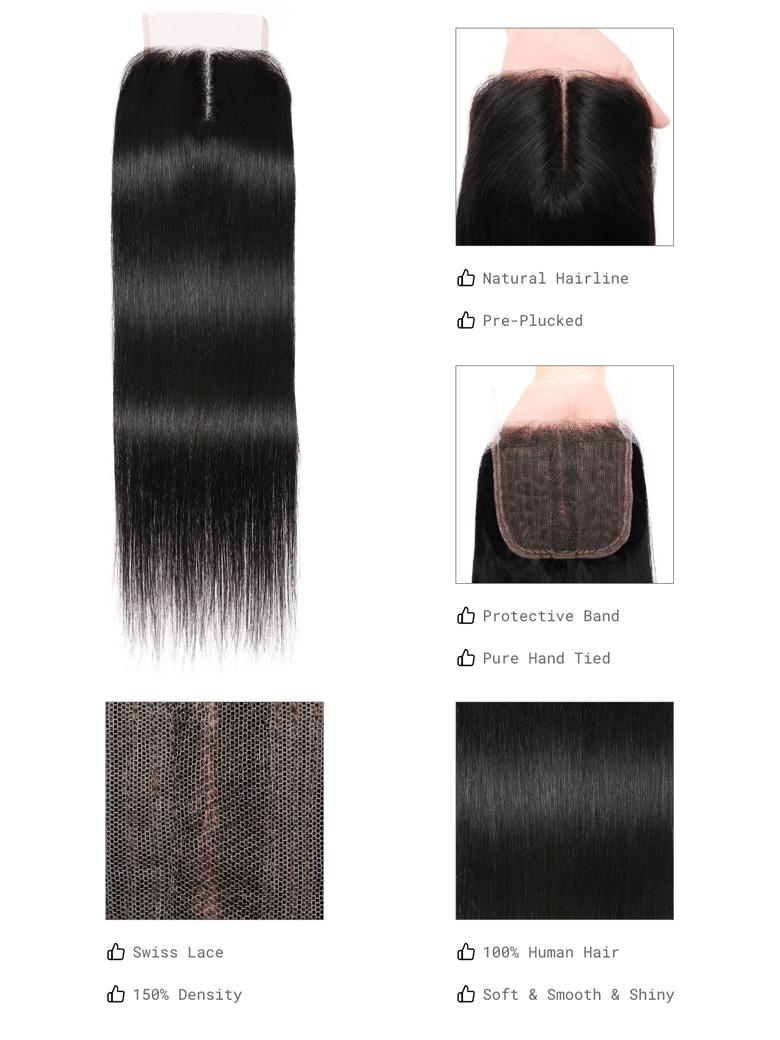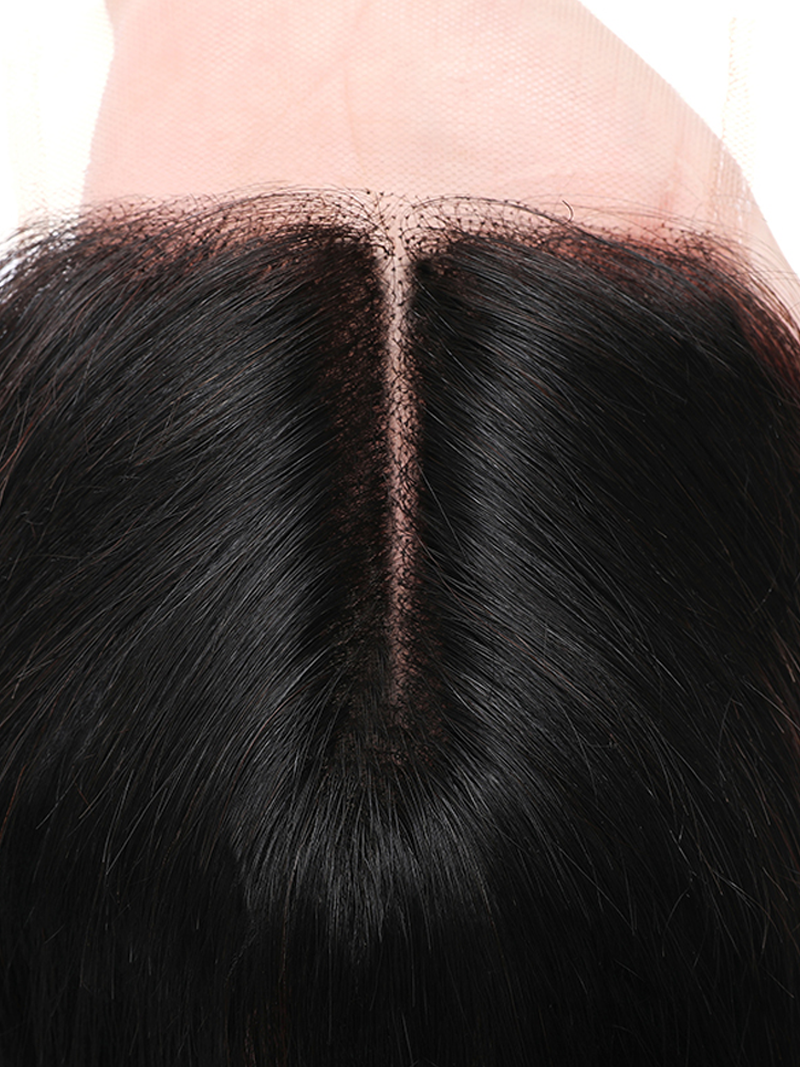 UNice Hair Upgrade T Part Lace Closure with Baby Hair Straight Human Hair Closure Middle Part Natural Black