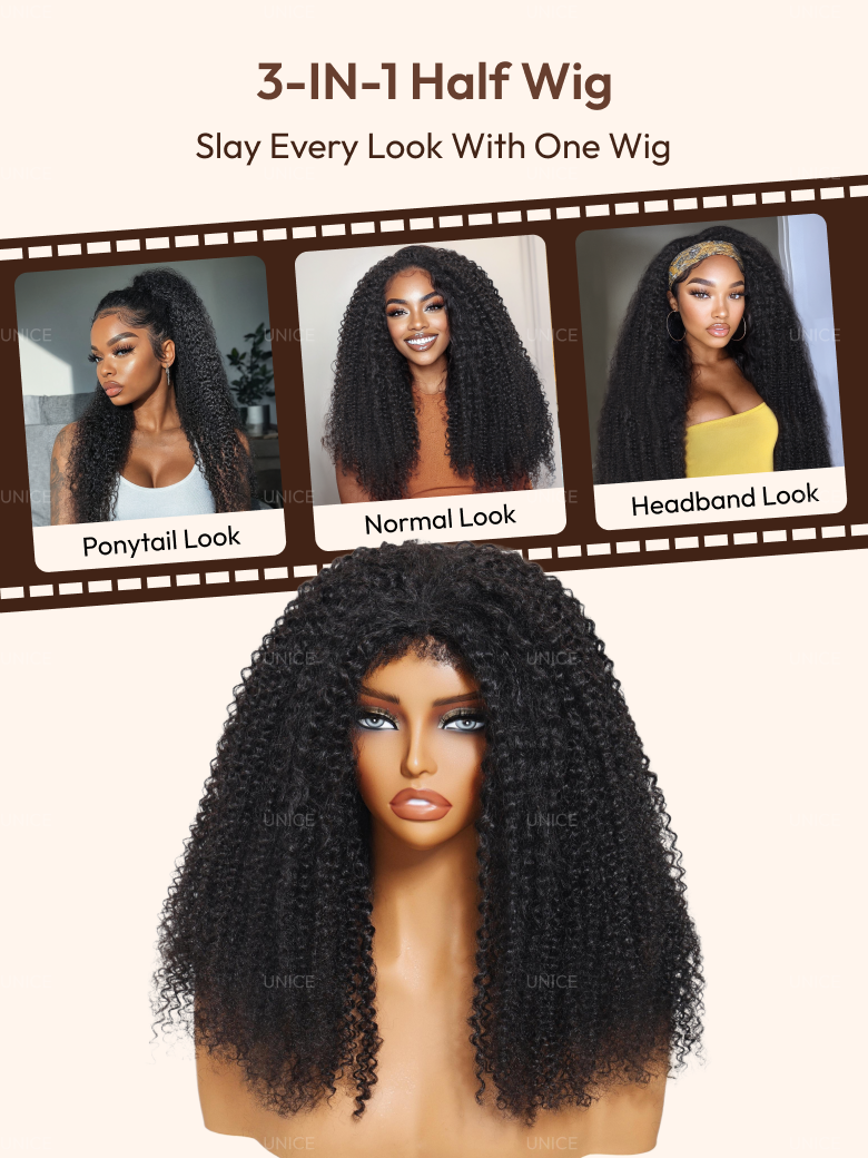 Lumivive Half Wig 4C Kinky Curly Glueless Flip Over Wig for Beginners