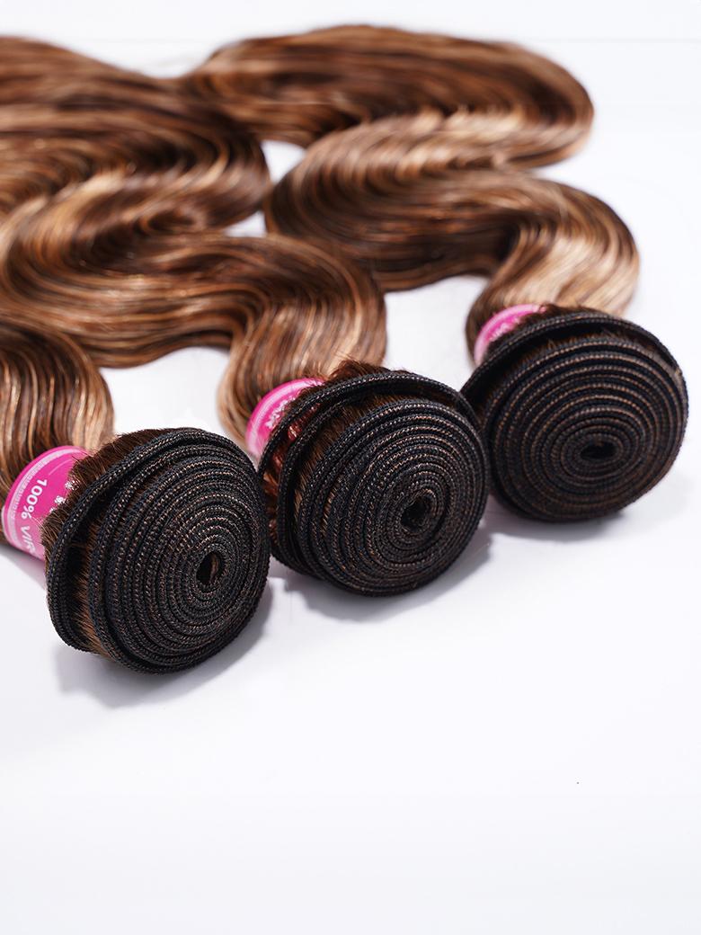 Lumivive Honey Blonde Piano Highlighted Body Wave 3Pcs Bundles With Closure Deal
