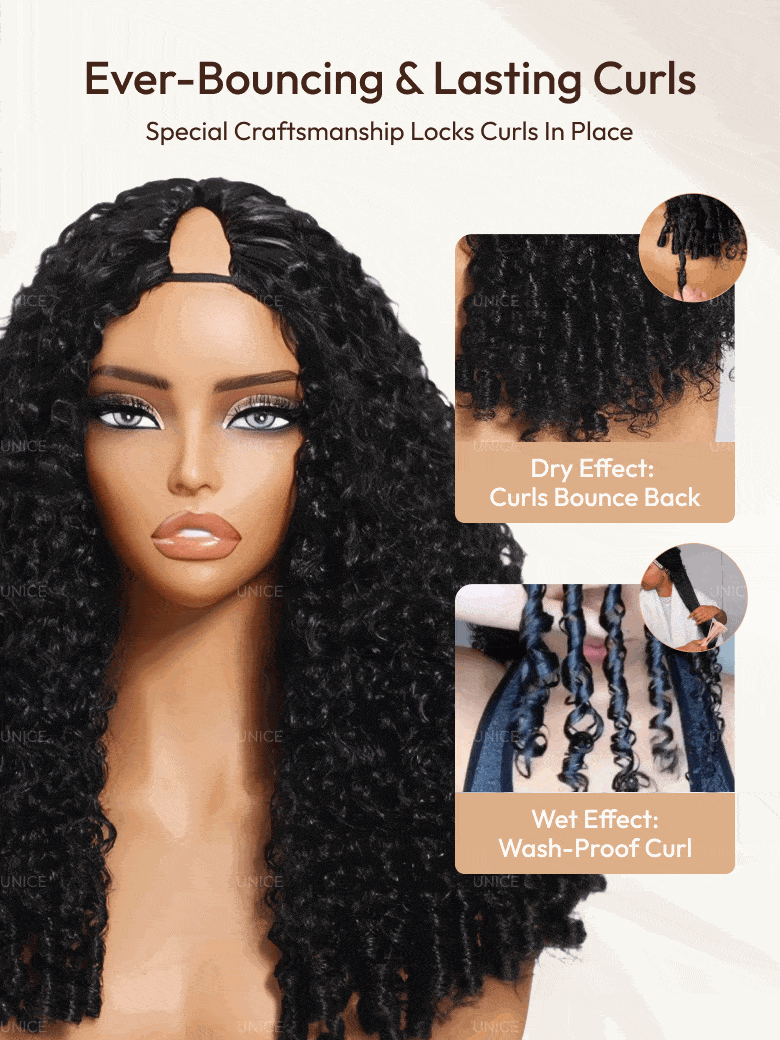 Lumivive InvisiBlend™ V Part Curly Texture Drawstring Human Hair Wig With Finger Coil Ends