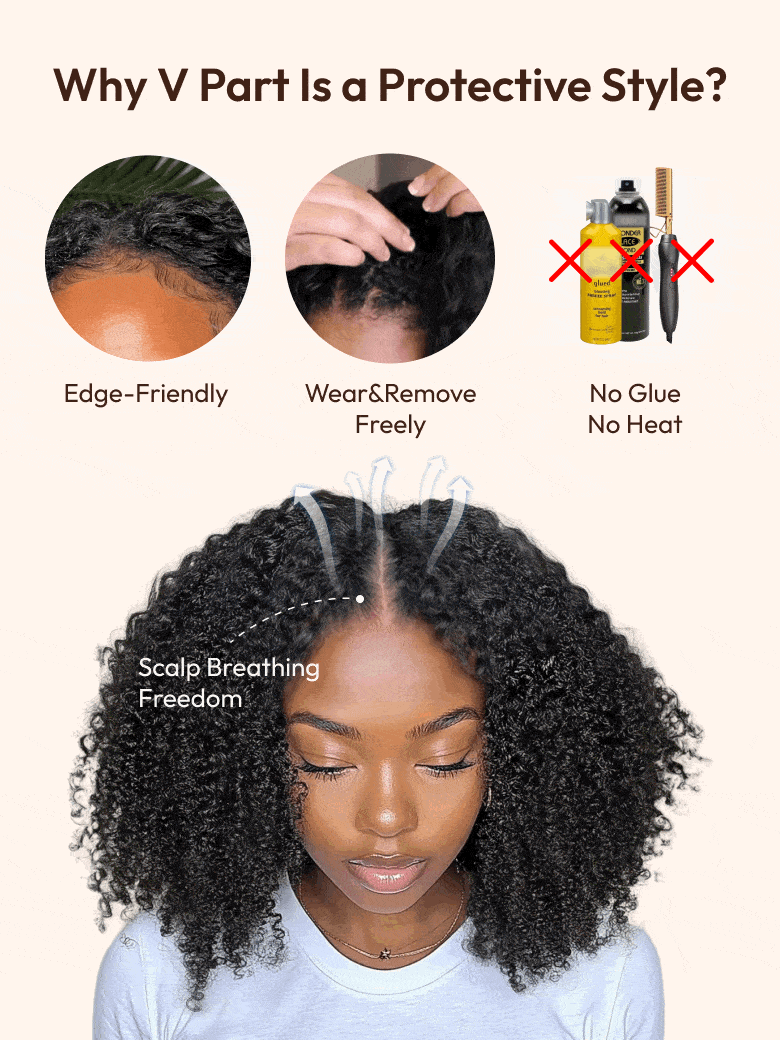 Lumivive InvisiBlend™ V Part Curly Wig With Invisible Drawstring No Leave Out