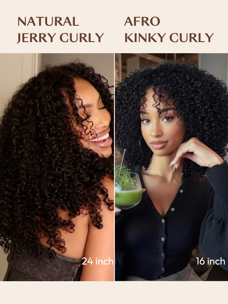 - Texture Full, bouncy kinky curls that look just like your own.