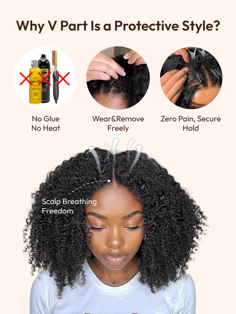 Lumivive InvisiBlend™ V Part Curly Wig With Invisible Drawstring No Leave Out