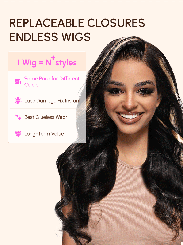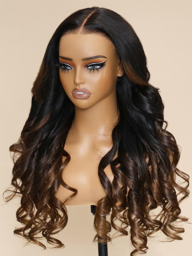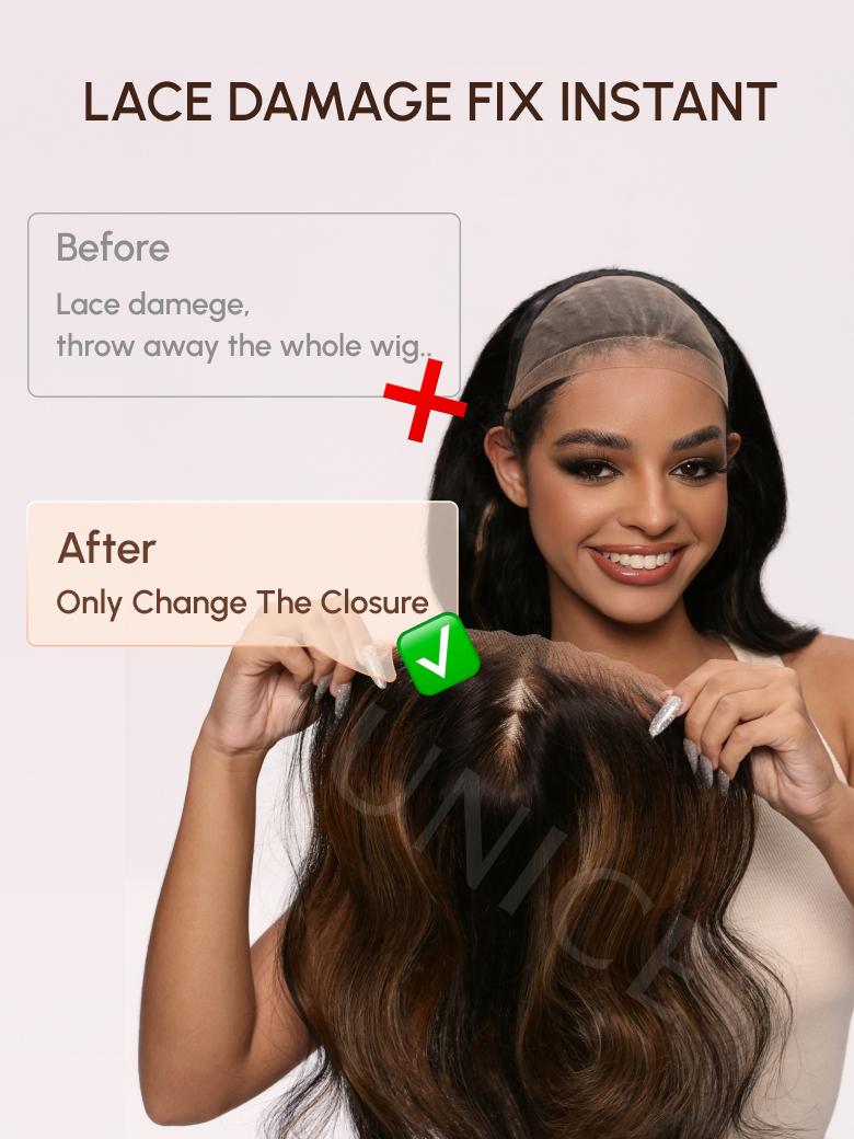 Lumivive Magic Lace Wig Black to Chestnut Brown Ombre With 7×5 Replaceable Closure