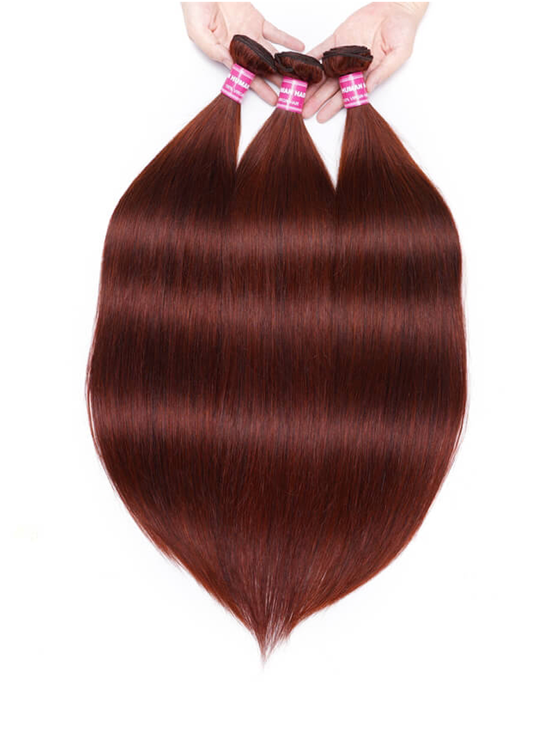 UNice Mahogany Auburn Brown 3Pcs 100% Remy Human Straight Hair Bundles