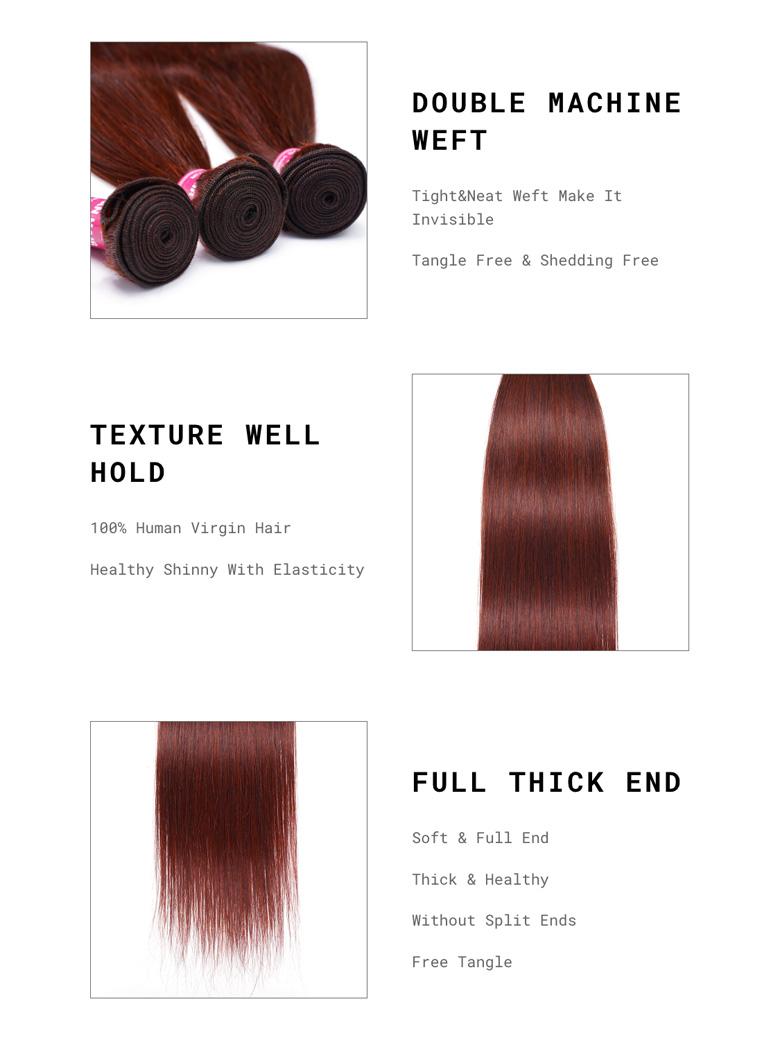 UNice Mahogany Auburn Brown 3Pcs 100% Remy Human Straight Hair Bundles