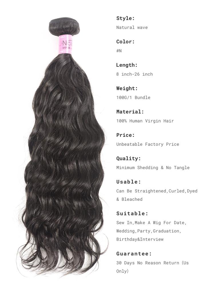 UNice Natural Wave Texture Human Hair 3Pcs Bundles