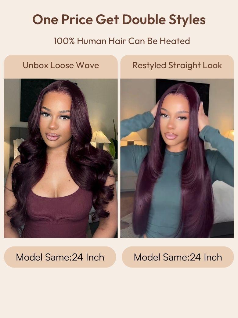 Lumivive Pre-Everything™ Black Cherry Lace Front Purple Wig In Layered Cut