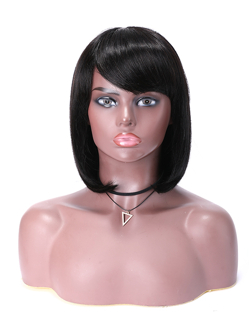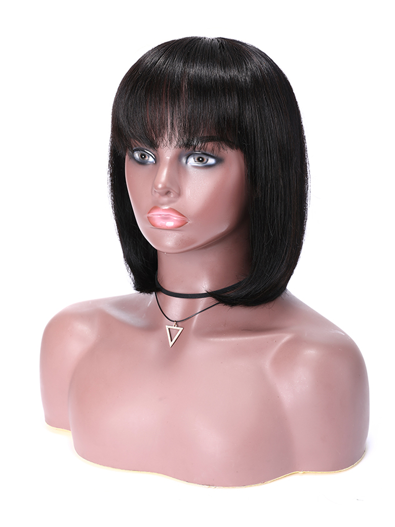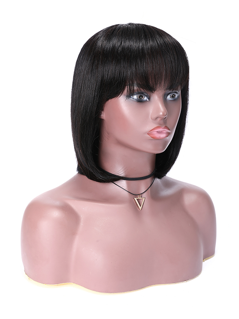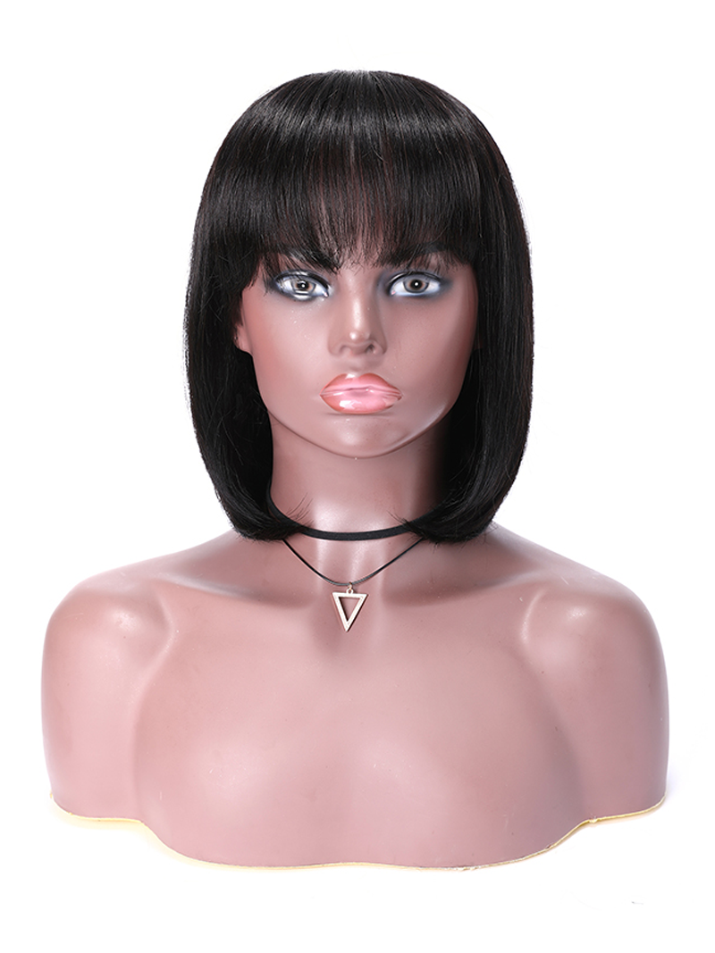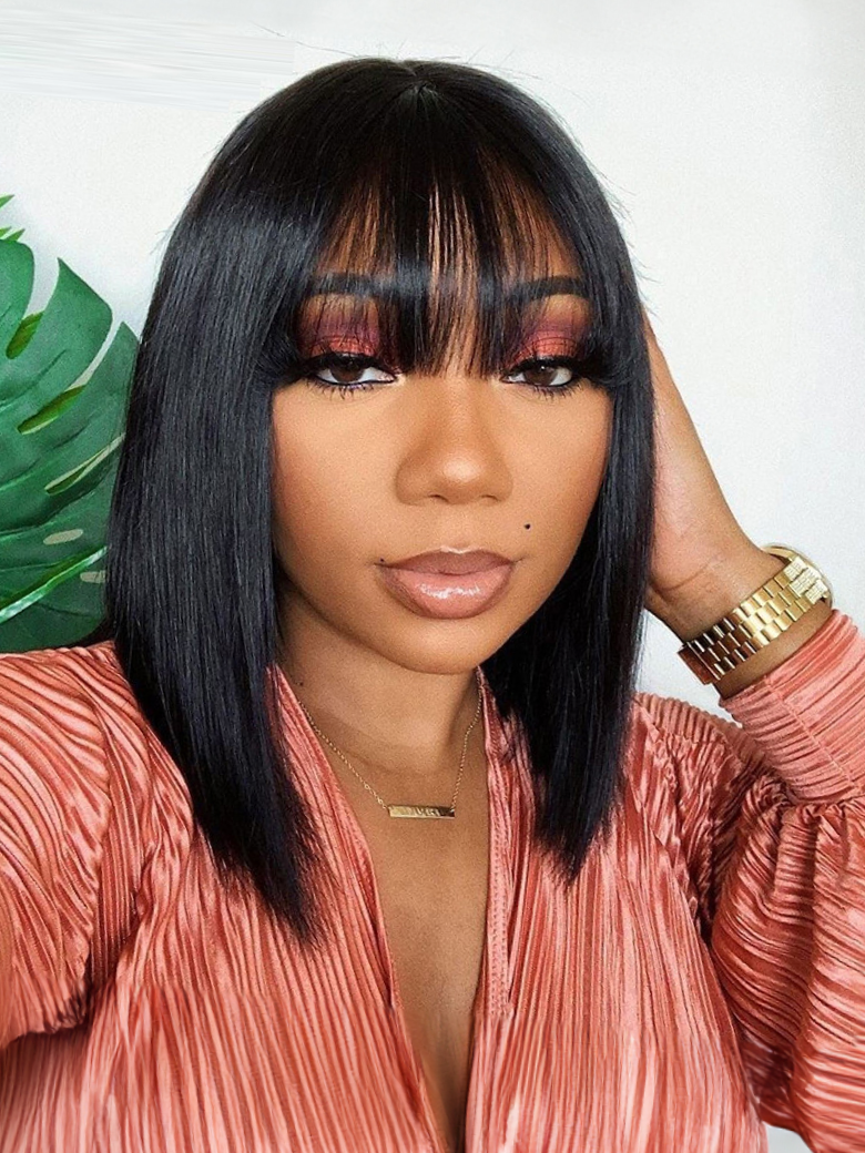 Lumivive Short Bob Wigs Black Wig for Women with Bangs Machine Made Straight Wig
