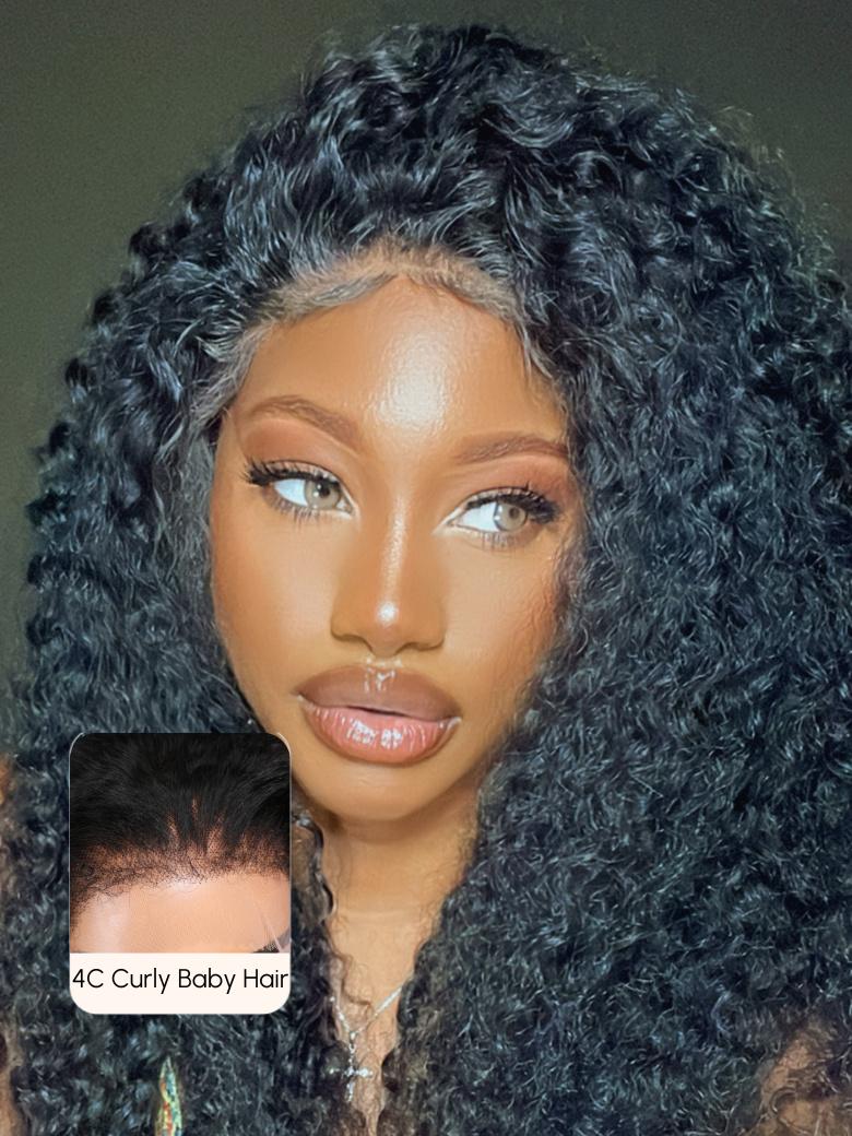 Lumivive Transparent Lace 4×0.75 / 13×4 Curly Black Natural Wig Durable & Versatile