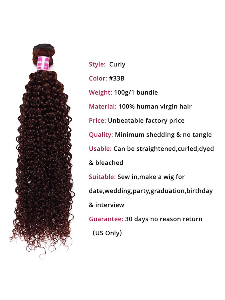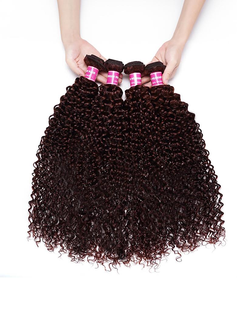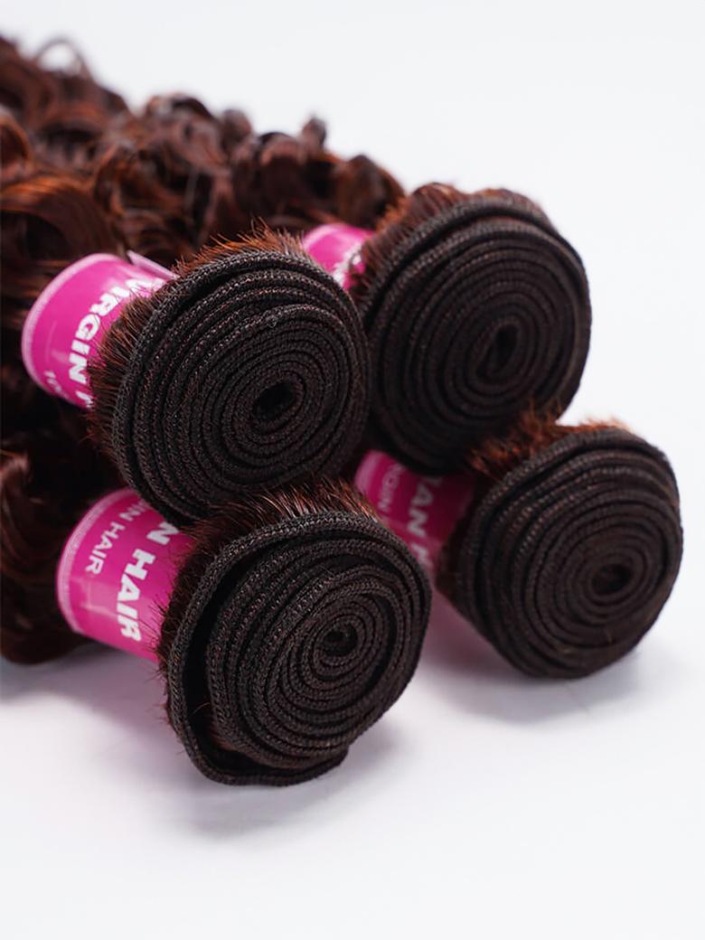 Lumivive Vibrant Reddish Brown Jerry Curl 4Pcs 100% Remy Human Hair Bundles Deal